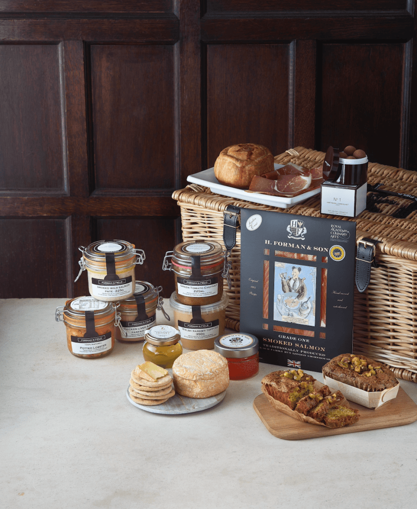 Forman’s Finest Hamper delivers exactly what it promises — London Cure Smoked Salmon, Wild Smoked Salmon Pâté, Potted Lobster, Royal Roe, Chicken Liver & Brandy Parfait, Alderton Ham and a gloriously oozy Tunworth. No fillers, no compromise.