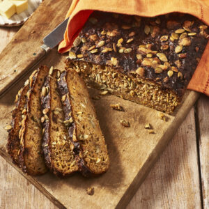 A deliciously dense, seedy loaf made with finest Red Leicester and Cheddar. Similar texture to a malt loaf, spread with lashings of unsalted butter ! Slice it, toast, serve…