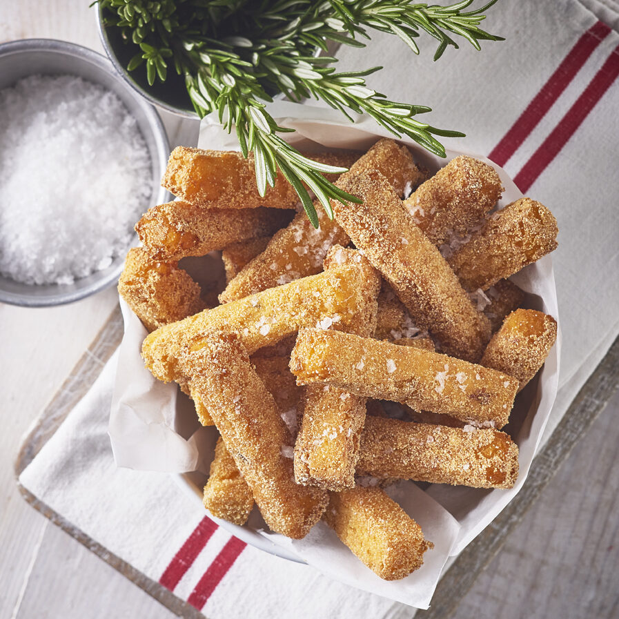 Our homemade Polenta Chips are a great alternative to potato chips, handmade by our talented chefs.