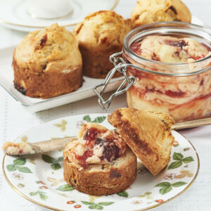 Our Strawberry Ripple Cream is made with homemade English strawberry jam and a heavenly blend of clotted cream and fresh vanilla buttercream. Comes in a reusable kilner jar, and accompanied by four of our light-as-a-feather freshly baked scones. Put the kettle on and tuck in.