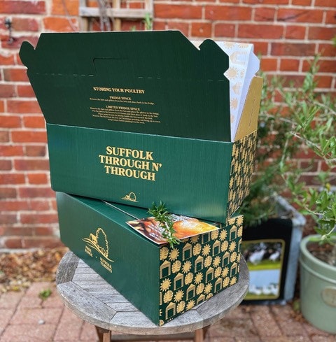 Each goose comes in its own presentation box, wrapped in greaseproof paper and finished with a sprig of rosemary. Inside, you’ll find full cooking instructions, a pop-up timer, vacuum-packed giblets, and a little jar of goose fat for basting — everything you need for a perfectly cooked festive centrepiece.